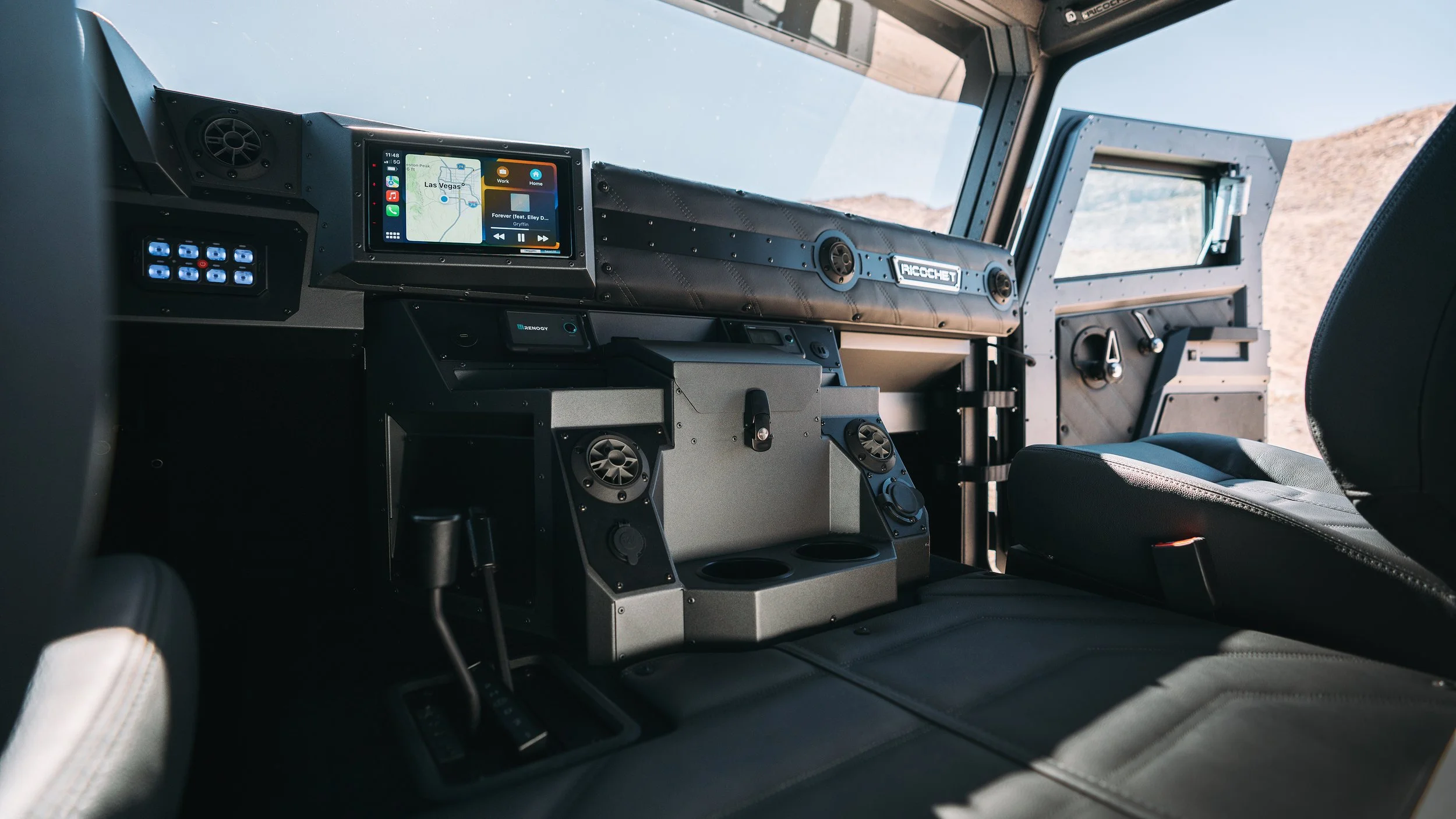 The Ricochet is a modern take on a classic recipe. Unmatched off-road capabilities, High Output Diesel Power Plant and a B6 Armored Passenger Cabin combine to make a vehicle that can withstand high power rifle fire, treacherous terrain and high speed scenarios.